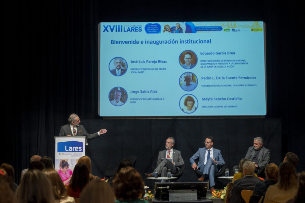 La sesión inaugural contó con la participación de José Luis Pareja Rivas, presidente del Grupo Social Lares; Jorge Sainz Alas, presidente de Lares Castilla y León; Eduardo García Brea, director general de Personas Mayores, Discapacidad y Atención a la Dependencia de la Junta de Castilla y León; y Pedro Luis de la Fuente Fernández, subdelegado del Gobierno en Burgos.